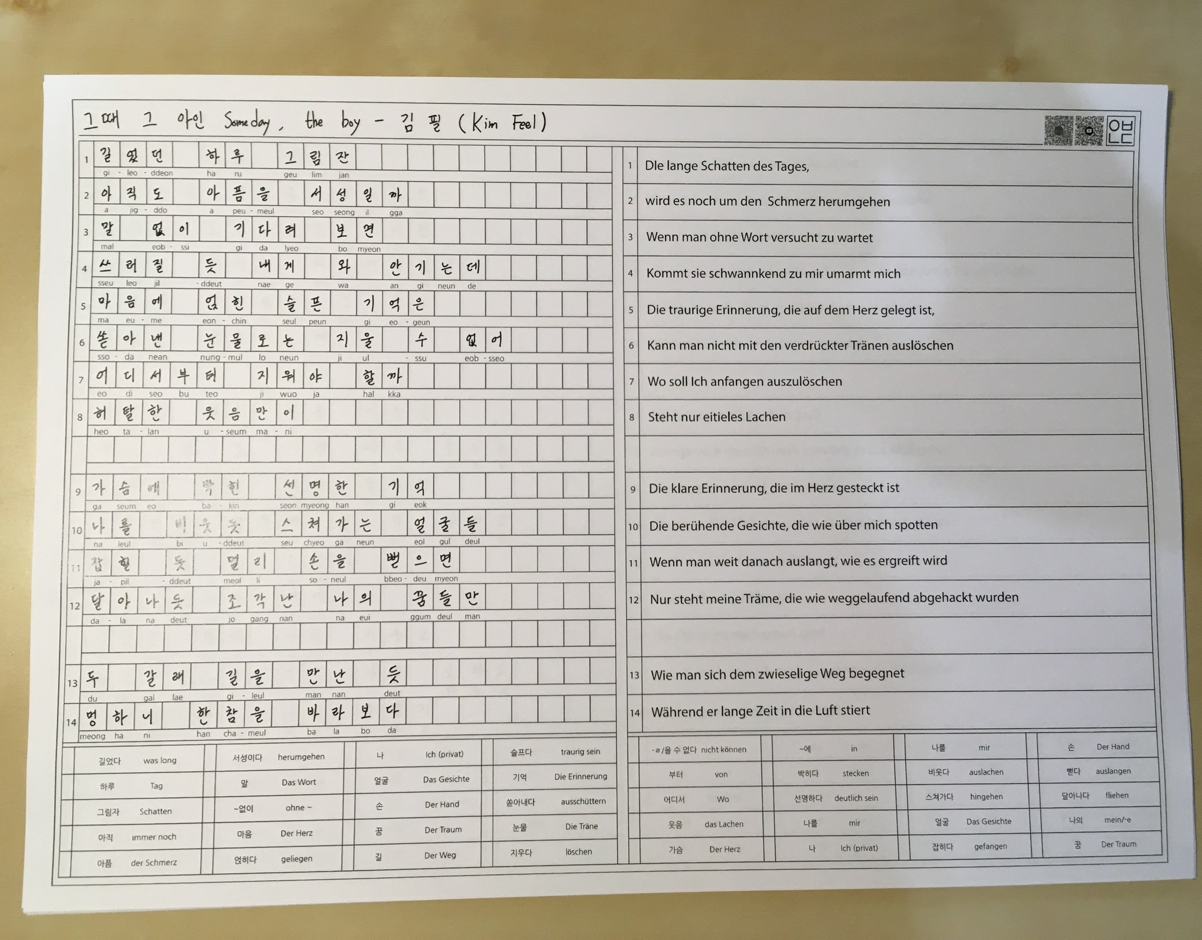 ANABADA Song korean practice note template